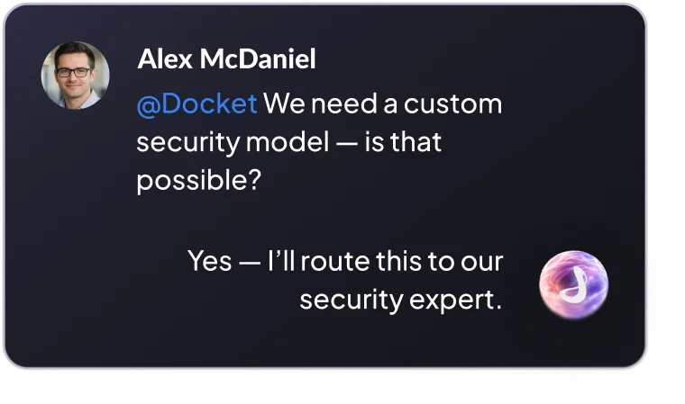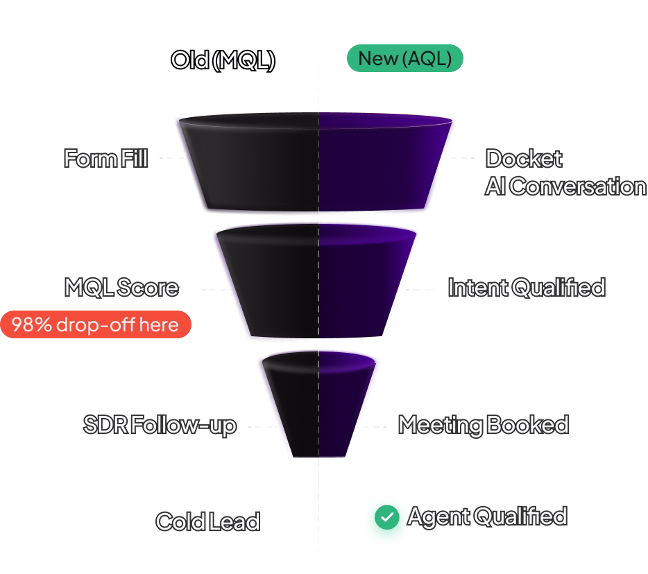 Docket's AI Marketing Agent engages every website visitor in a real conversation , qualifying intent, booking meetings, and syncing full context into your CRM. No SDR required for the first touch.
